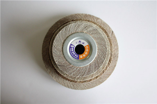 千葉輪,又名千頁(yè)輪、卡盤(pán)式頁(yè)輪,屬于涂附磨具的一種,每個(gè)產(chǎn)品以成百上千的紗布片粘合而成,故得名。它是以氧化鋁為磨料,基材為布基經(jīng)流水線(xiàn)制作成紗布,再由紗布層疊和全樹(shù)脂粘貼而成??ūP(pán)上下開(kāi)凹槽將砂葉片固定在上下卡盤(pán)之間,砂葉片的內側邊的兩端分別設置L形卡扣槽和緊固圈,緊固圈與卡扣槽固定連接,所述緊固圈經(jīng)膠液與卡扣槽固化粘結在一起,而成千頁(yè)輪,目前千葉輪分為直槽和U型槽口兩種。